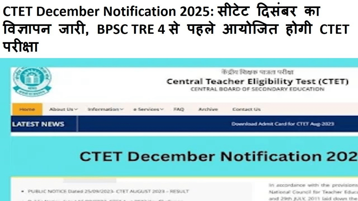 ब्रेकिंग न्यूज़: CTET 2025 परीक्षा की संभावित तिथि पर बड़ा अपडेट! उम्मीदवारों के लिए महत्वपूर्ण सूचना